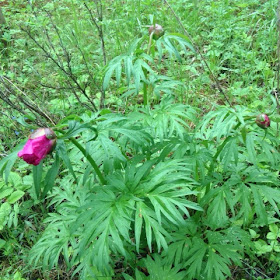 Sisarellani oli suuri ja hieno kuolanpioni. Ihmettelin kun hän harmitteli joutuessaan olemaan poissa kun pionit kukkivat. Yhtenä jouluna sain häneltä lahjaksi pussillisen pionin siemeniä. Nyt kun olen lueskellut pionin kasvatuksesta, tuntuu ihmeeltä, että sain siemenistä kasvamaan yhden pionin. Monta vuotta meni, ennen kuin se kukki. Ja aina kun se kukki, olin töissä. Pari kertaa olen nyt onnistunut olemaan paikalla kukinnan aikaan. Nytkin joudun lähtemään kaupunkiin. Saattaa olla, että seuraavan kerran kun tulen mökille, on kukinta ohi.